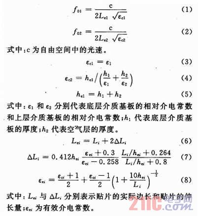 - 雙層微帶天線的尺寸參數(shù)