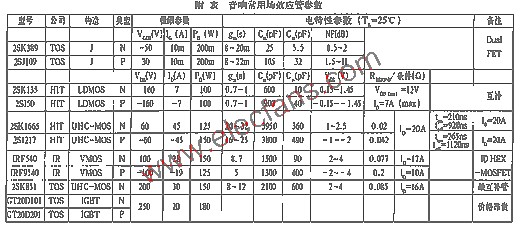 場效應晶體管在音響數(shù)字化的今天應用范圍越來越廣。其原理、優(yōu)點和使用常識在一些工具書及報刊上已有不少論述,在此不再贅述。本文通過兩個容易被發(fā)燒友特別是初學者所忽略的要點來說明場效應管的合理應用。目前,應用于音響領域的場效應管包括結型管(JFET)和絕緣柵場效應管(MOsFET),而后者又分為LDMOS、VMOS及近年出現(xiàn)的UHC、IGBT等,并且至今仍在不斷發(fā)展與完善之中。