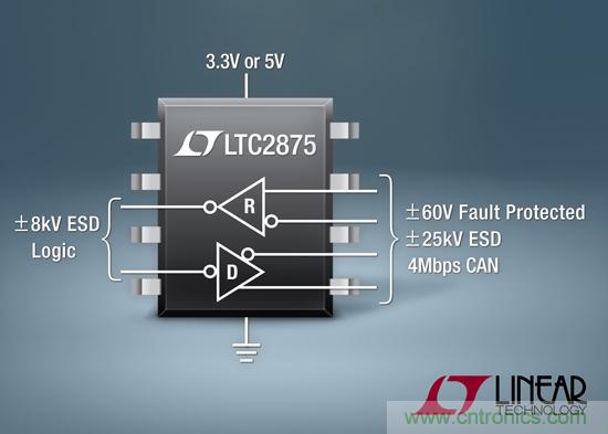 凌力爾特公司推出高壓容限CAN收發(fā)器LTC2875 提供±60V故障保護