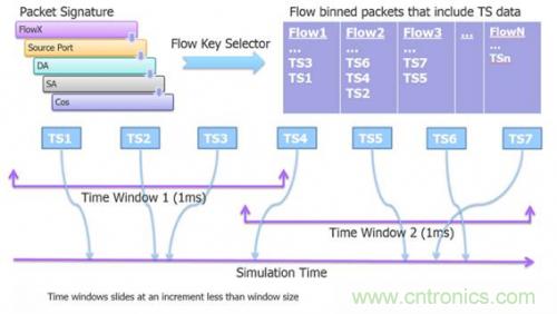 硬件仿真的標志之一是,它能對大型復(fù)雜系統(tǒng)進行復(fù)雜性能分析。某些情況下,可能需要數(shù)百萬個數(shù)據(jù)包才能切中當(dāng)前設(shè)計中穩(wěn)態(tài)分析的要點。以測量百萬兆以太網(wǎng)交換機的流量比特率為例??梢圆捎锰摂M以太網(wǎng)簽名生成和數(shù)據(jù)包時間戳 (TS) 來計算這些測量。