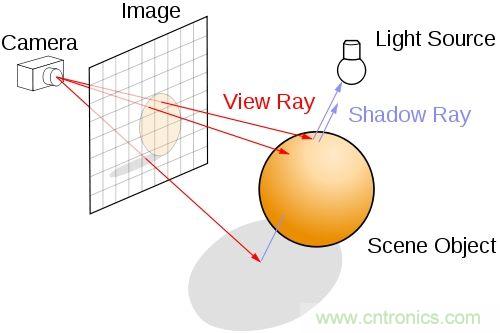 光線追蹤技術(shù)是由幾何光學(xué)通用技術(shù)衍生而來。它通過追蹤光線與物體表面發(fā)生的交互作用,得到光線經(jīng)過路徑的模型。