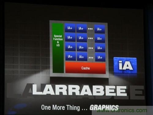 在2007年的IDF上,Intel正式揭開獨(dú)立顯卡——代號“Larrabee”的神秘面紗,Larrabee隸屬于其萬億次運(yùn)算項(xiàng)目(Tera-scale),也將是Intel的第一款實(shí)用級萬億次運(yùn)算處理器,其處理能力“大大超過”一萬億次浮點(diǎn)每秒;根據(jù)Intel首席架構(gòu)師EdDavis的演示文稿,Larrabee基于可編程架構(gòu),主要面向高端通用目的計(jì)算平臺(tái),至少有16個(gè)核心,主頻1.7-2.5GHz,功耗則在150W以上,支持JPEG紋理、物理加速、反鋸齒、增強(qiáng)AI、光線追蹤等特性。