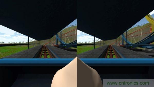 比如說(shuō)你在坐“VR 過(guò)山車(chē)”時(shí),視覺(jué)上你正處于畫(huà)面中的狀態(tài),在做劇烈的高速運(yùn)動(dòng),但是前庭系統(tǒng)卻表示你并沒(méi)有在運(yùn)動(dòng),這時(shí)就會(huì)導(dǎo)致頭暈。