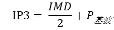 實(shí)際上,IP3/TOI是計(jì)算所得而非測(cè)量所得的結(jié)果。一階產(chǎn)物和三階產(chǎn)物之間的功率增加比是3:1,利用以下公式可以計(jì)算出IP3。