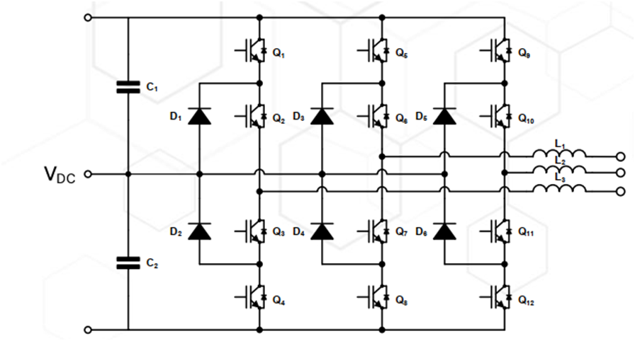 三電平I-NPC和三電平ANPC是電源轉換系統(tǒng)(PCS) 中常見的雙向拓撲結構, 可滿足輸出功率不斷增長的需求。 與兩電平拓撲相比, 三電平拓撲需要更多的元器件、 驅動信號以及更復雜的控制結構。 但其優(yōu)勢也十分明顯:三電平結構能夠有效降低功率損耗和電流紋波(由于所承受電壓減半) , 并具有更好的抗電磁干擾(EMI) 性能。