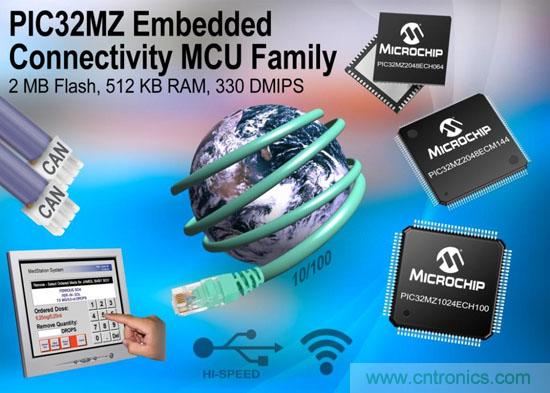 全球領先的整合單片機、混合信號、模擬器件和閃存專利解決方案的供應商——Microchip Technology Inc.(美國微芯科技公司)宣布推出兩款最新創(chuàng)新產品。擁有24款器件的全新PIC32MZ嵌入式連接(EC)系列32位MCU提供了330 DMIPS和3.28 CoreMarks™/MHz的卓越性能,以及有雙存儲區(qū)的現場升級閃存(高達2 MB)、512 KB的大容量RAM,以及支持當今要求嚴苛的應用所需的連接外設。同時,Microchip還推出了業(yè)界最全面的32位單片機固件開發(fā)框架——MPLAB® Harmony。該框架是第一款把許可、轉售及支持Microchip和第三方中間件、驅動程序、函數庫和實時操作系統(tǒng)集成于一體的產品,簡化了包括全新PIC32MZ系列在內的所有32位MCU的開發(fā)過程,縮短了集成和上市所需的時間。