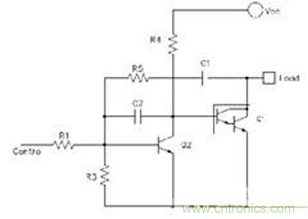 圖中R1作用是Q2的基極限流;R3作用是泄放掉關斷狀態(tài)時基極電荷,讓Q2在低電平時保持截止狀態(tài);R4作用是Q2的集電極限流以及Q1的基極限流;電容C2是加速電容,加速Q(mào)2的開關速度,降低Q2管耗,從而延長Q2壽命;R5和C1是作為輸出反饋給Q2的基極,作用同樣為加速Q(mào)2的開關速度,延長Q2的壽命以及電路整體的性能,此為正反饋。