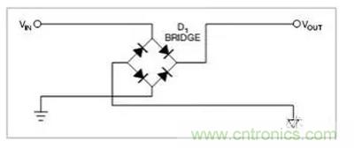 圖2.是一個橋式整流器,不論什么極性都可以正常工作,但是有兩個二極管導(dǎo)通,功耗是圖1的兩倍。