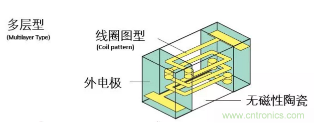 多層片狀電感的制作工藝:將鐵氧體或陶瓷漿料干燥成型,交替印刷導電漿料,最后疊層、燒結成一體化結構(Monolithic)。