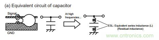 一般來說,直插件的引線較長,其寄生電感比SMD大;電解電容內(nèi)部有大量卷繞結(jié)構(gòu)的鋁箔,寄生電感比其它工藝的電容大。1206尺寸的MLCC內(nèi)部電極面積和焊接端子截面明顯比0805大,所以尺寸越大的MLCC,自諧振頻率就越低。