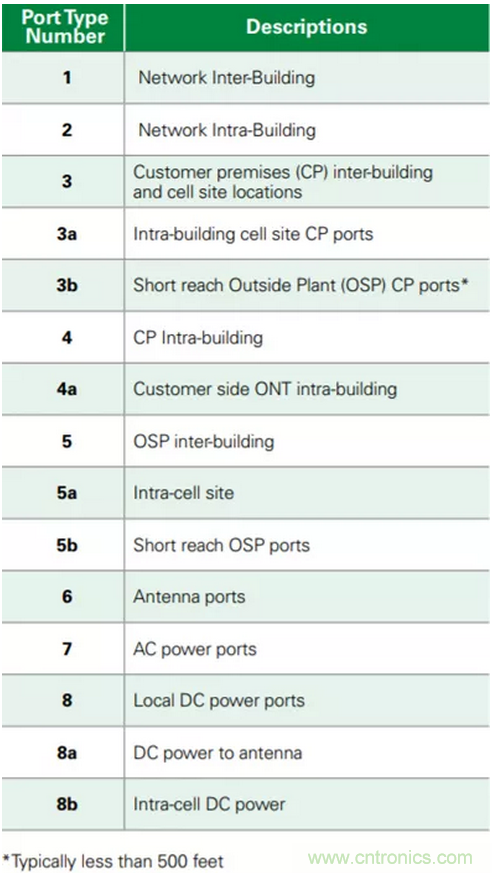 在美國,電信公司在網(wǎng)絡(luò)側(cè)安裝設(shè)備的電路保護(例如,安裝光纖網(wǎng)絡(luò)終端單元或ONT的附近機柜中)必須符合NEBS(網(wǎng)路設(shè)備建設(shè)系統(tǒng))設(shè)計指南,這反過來可能需要符合GR-1089第6期端口類型3浪涌。由于這些回路很短,端口類型可被指定為類型3a / 5a。每個供應(yīng)商應(yīng)界定其自身的防雷電要求。端口類型3是這類設(shè)備中的最嚴重情況。欲了解有關(guān)端口類型的更多信息,請參見表2。