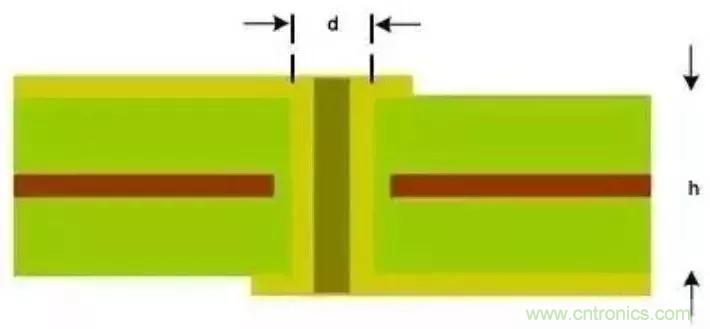 圖5:PCB橫截面用于估算寄生影響的過孔結(jié)構(gòu)