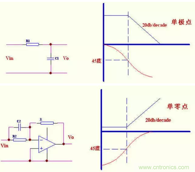 bode 圖可以簡(jiǎn)單的判定電路的穩(wěn)定性,甚至可以確定電路的閉環(huán)響應(yīng),就向我下面的圖中表示的.零,極點(diǎn)說明了增益和相位的變化。
