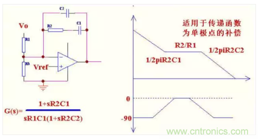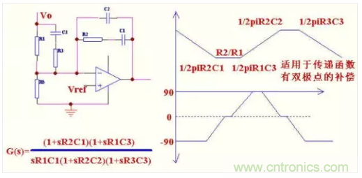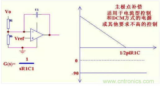 雙極點(diǎn),單零點(diǎn)補(bǔ)償,適用于功率部分只有一個(gè)極點(diǎn)的補(bǔ)償.如:所有電流型控制和非連續(xù)方式電壓型控制.