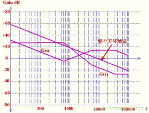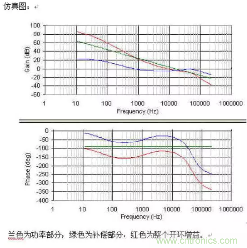 蘭色為功率部分,綠色為補(bǔ)償部分,紅色為整個(gè)開環(huán)增益.