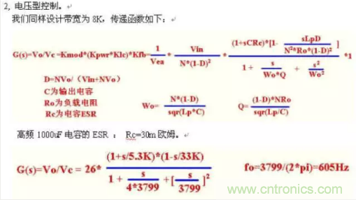 下面分電壓型和峰值電流型控制來設(shè)計(jì)此電源環(huán)路.所有設(shè)計(jì)取樣點(diǎn)在輸出小LC前面.如果取樣點(diǎn)在小LC后面,由于受LC諧振頻率限制,帶寬不能很高.1)電流型控制