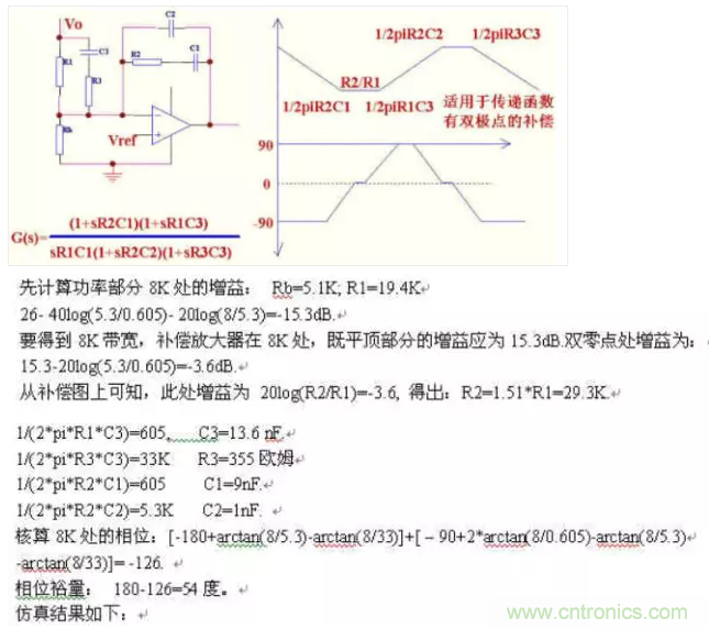 如果相位裕量不夠時(shí),可適當(dāng)把兩個(gè)零點(diǎn)位置提前,也可把第一可極點(diǎn)位置放后一點(diǎn).