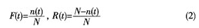 產(chǎn)品在一定時(shí)間內(nèi)的可靠度和累積失效概率可以通過大量試驗(yàn)來確定。例如取N個(gè)產(chǎn)品進(jìn)行試驗(yàn),若在規(guī)定時(shí)間內(nèi)有n個(gè)失效,則: