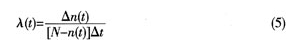 失效密度用來反映產(chǎn)品在全部工作時(shí)間失效的分布情況。產(chǎn)品工作到t時(shí)刻后,在單位時(shí)間內(nèi)失效的概率稱為失效率λ(t),可用下式表示: