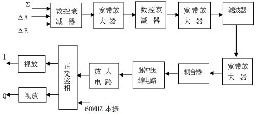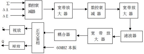 視頻接收組合是由I/Q正交鑒相器和視頻放大器組成。其中應(yīng)用數(shù)控衰減器實(shí)時(shí)調(diào)整各路本振信號(hào)的相位,以達(dá)到補(bǔ)償接收機(jī)系統(tǒng)相位一致性的目的。最后輸出反射和應(yīng)答的12路I/Q信號(hào)以及反射和應(yīng)答的檢波信號(hào)。