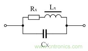 線圈有分布電容。因此,電感線圈就相當(dāng)于一個電感與一個分布電容并聯(lián)。如圖1所示。圖1中,LX為電感線圈的等效電感(理想電 感),RX為線圈的等效電阻,CX為電感的分布電容。