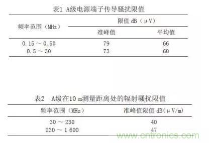 根據(jù)鐵路客運專線標(biāo)準(zhǔn)規(guī)定,傳導(dǎo)騷擾限值和輻射騷擾限值如表1、2所示。