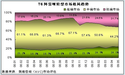 隨著彩電市場產(chǎn)品技術(shù)、功能的進(jìn)一步演化,以及不同地區(qū)、不同人群需求的多樣化,中國彩電市場向高端和低端二個(gè)市場分化趨勢更加明顯:趨優(yōu)市場,高端消費(fèi)群體更樂意花更多的錢買高品質(zhì)、高價(jià)值、多功能且充滿感情色彩的產(chǎn)品和服務(wù);趨低市場,低端消費(fèi)群體更在意能用相對低廉的價(jià)格購買可滿足針對性需求的高性價(jià)比產(chǎn)品和服務(wù),平板電視的啞鈴型市場格局也正逐步呈現(xiàn)出趨勢。