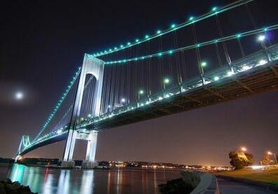 諸如尺寸小、使用壽命長(zhǎng)、功耗低、易于調(diào)光和快速接通時(shí)間等好處已經(jīng)加速了高亮度LED在工業(yè)和住宅照明等很多已有照明應(yīng)用中被采用。LED的長(zhǎng)壽命和小尺寸使得在各種應(yīng)用中引入新配置成為可能,這些應(yīng)用包括在冰箱正面提供照明的白光LED陣列、以至照亮整個(gè)大學(xué)校園的更復(fù)雜系統(tǒng)等。以下圖顯示的是美國(guó)紐約Verrazano Narrows大橋,這個(gè)大橋完全由高亮度LED照明。LED的高效率極大地降低了所需的電力,而它們的長(zhǎng)壽命和耐用性在相對(duì)苛刻的海洋環(huán)境中尤其重要。