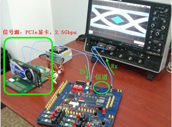 對比分析的工作環(huán)境如圖2所示:信號源為某PCIe顯卡發(fā)送的2.5Gbps的信號,信道為某DEMO板上24英寸長的傳輸線,接收端為兩個50歐的電阻。分別在三種情況下進行分析: