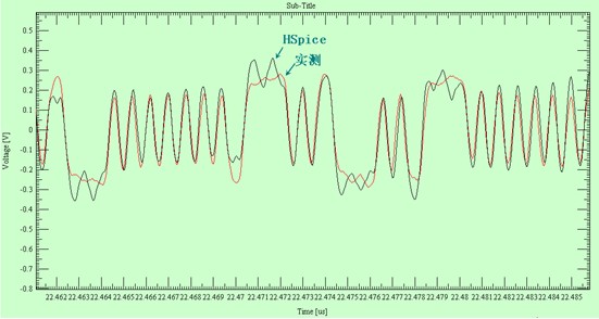 3. 使用HSPICE仿真背板系統(tǒng):PCIe顯卡發(fā)送出的信號通過SMA電纜連接到示波器,即直接測量發(fā)送端的波形,保存波形為文本格式后,修改為HSPICE的PWL格式的信號源,放入HSPICE仿真器中作為驅(qū)動端,把背板(即24英寸傳輸線)的S參數(shù)文件調(diào)入HSPICE軟件,接收端為2個50歐電阻,用HSPICE仿真出接收端上的電壓波形(注:仿真使用的HSPICE版本為2008.03)。