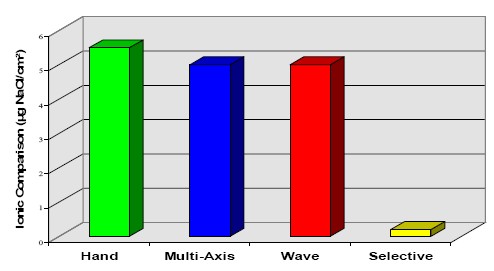 選擇焊只是針對(duì)所需要焊接的點(diǎn)進(jìn)行助焊劑的選擇性噴涂,線路板的清潔度因此大大提高,離子污染量大大降低。助焊劑中的NA+ 離子和CL-離子如果殘留在板子上,時(shí)間一長(zhǎng)會(huì)與空氣中的水分子結(jié)合形成鹽從而腐蝕線路板和焊點(diǎn),最終造成焊點(diǎn)開(kāi)路。因此,傳統(tǒng)的生產(chǎn)方式往往需要對(duì)焊接完的線路板進(jìn)行清潔。而選擇焊則從根本上解決了這一問(wèn)題。