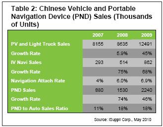 盡管2009年中國(guó)市場(chǎng)的乘用車(PV)和輕型卡車銷量接近1230萬(wàn)輛,躍居全球最大的汽車市場(chǎng),但包括OEM和售后in-dash在內(nèi)的車載導(dǎo)航配售率只有7%左右。