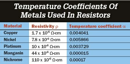 表1:電阻中所使用的金屬?zèng)Q定電阻的溫度系數(shù)。