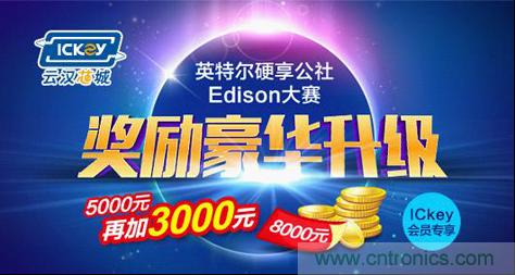 【導(dǎo)讀】英特爾Edison設(shè)計大賽是一個尋找國內(nèi)新生創(chuàng)客的舞臺。ICkey(云漢芯城)此次應(yīng)邀加盟英特爾Edison設(shè)計大賽,將為大賽全國30強選手每人提供價值5000元的電子元器件及開發(fā)板等產(chǎn)品的資源贊助。