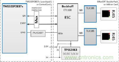 圖示1-大聯(lián)大友尚推出的基于TI高性能MCU的EtherCAT接口參考設(shè)計(jì)系統(tǒng)架構(gòu)圖