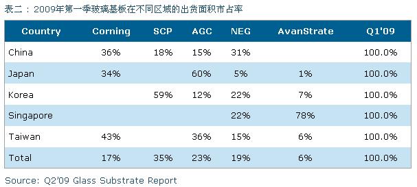 而日本前三大主要玻璃基板供貨商包含:Asahi(AGC, 旭硝子)在2008年第四季占22%,而2009年第一季上升到23%;Nippon(NEG, 日本電氣硝子)在2008第四季占18%,而2009年第一季也上升到19%;而AvanStrate’ 在2008年第四季占5%,而2009年第一季同樣也上升達(dá)6%。