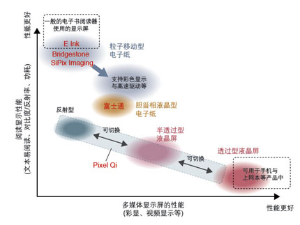 具體來(lái)說(shuō),日本Bridgestone公司與美國(guó)SiPix Imaging公司等多家廠(chǎng)商已經(jīng)開(kāi)始為電子書(shū)閱讀器提供電子紙。美國(guó)初創(chuàng)企業(yè)Pixel Qi公司也開(kāi)始提供具有專(zhuān)門(mén)設(shè)計(jì)的電子紙顯示模式的液晶顯示屏。