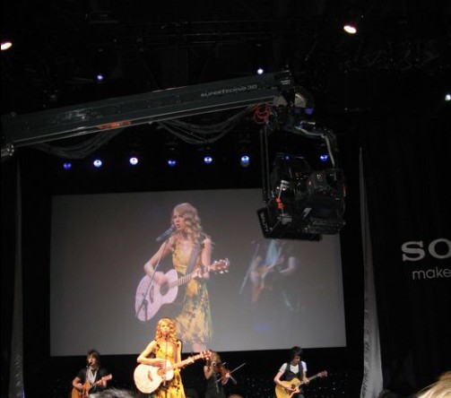 索尼董事長兼社長兼CEO霍華德·斯金格在兼作發(fā)布會現(xiàn)場的索尼展位上如此宣言之后,在美國備受年輕人歡迎的歌手Taylor Swift走上舞臺。會場上用能夠拍攝三維(3D)影像的專業(yè)攝像機拍攝了Swift的現(xiàn)場演奏,并在會場的屏幕上進行了3D現(xiàn)場直播。佩戴著3D影像用眼鏡的觀眾同時觀看了現(xiàn)場表演和3D影像。