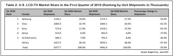 - 三星電子2010年第一季度在美國液晶電視市場奪回榜首位置