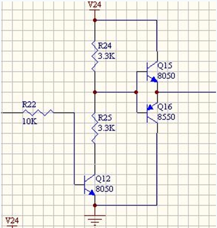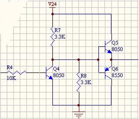 后面三極管和電阻,穩(wěn)壓管組成的電路進一步放大信號,驅(qū)動場效應管的柵極并利用場效應管本身的柵極電容(大約1000pF)進行延時,防止H橋上下兩臂的場效應管同時導通(“共態(tài)導通”)造成電源短路。