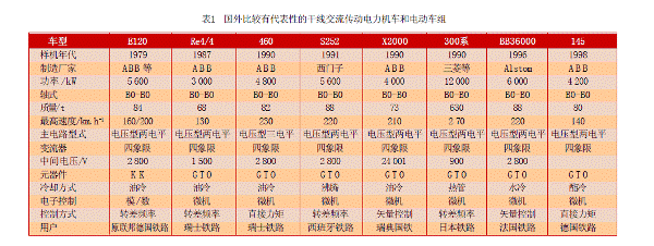 [page]20世紀(jì)70年代以來,電力電子學(xué)和微電子技術(shù)的出現(xiàn)和進(jìn)步,又重新喚起人們對交流傳動(dòng)系統(tǒng)的熱情。自1971年世界首臺(tái)采用異步交流傳動(dòng)系統(tǒng)的內(nèi)燃機(jī)車DE2500問世以來,交流傳動(dòng)系統(tǒng)以其突出的優(yōu)越性受到了各國鐵路運(yùn)輸部門的關(guān)注,獲得了長足的發(fā)展,并已基本取代了直流傳動(dòng)系統(tǒng)。與直流傳動(dòng)機(jī)車相比,交流傳動(dòng)具有無可比擬的優(yōu)越性,這已經(jīng)在各國鐵路運(yùn)輸系統(tǒng)中得到了廣泛的驗(yàn)證。交流傳動(dòng)所用的三相交流異步電動(dòng)機(jī)比直流電動(dòng)機(jī)的功率/體積比和功率/重量比更大,無需經(jīng)常維護(hù),故障率低。異步電動(dòng)機(jī)的恒功率區(qū)比直流電動(dòng)機(jī)大許多,轉(zhuǎn)速更高,起動(dòng)牽引力大,持續(xù)功率大,有利于實(shí)現(xiàn)重載和高速牽引。交流傳動(dòng)可以很容易地實(shí)現(xiàn)電氣制動(dòng),大大減少制動(dòng)閘瓦的消耗,并可以利用制動(dòng)時(shí)反饋的能量,起到節(jié)能節(jié)油的作用,經(jīng)濟(jì)效益顯著。另外,交流傳動(dòng)機(jī)車的一個(gè)突出的優(yōu)點(diǎn)在于其優(yōu)良的粘著特性,由于異步交流電動(dòng)機(jī)變頻調(diào)速系統(tǒng)具有很硬的機(jī)械特性,車輪更不容易打滑或者空轉(zhuǎn)。其次,交流傳動(dòng)電力機(jī)車牽引和再生工況的功率因數(shù)均接近于1,不僅降低了電網(wǎng)損耗而且在再生制動(dòng)時(shí)可將高質(zhì)量電能反饋給電網(wǎng),消除了電網(wǎng)對信號和通信系統(tǒng)的干擾。再者,機(jī)車采用交流牽引電動(dòng)機(jī)后,簧下重量大大減輕,改善了輪軌動(dòng)力學(xué)性能,降低了機(jī)車輪緣磨耗。隨著磁場定向矢量控制和直接轉(zhuǎn)矩控制等高性能異步電動(dòng)機(jī)控制策略的應(yīng)用,交流傳動(dòng)機(jī)車的調(diào)速性能已經(jīng)能夠達(dá)到甚至超過直流傳動(dòng)機(jī)車。表1是國外比較有代表性的使用交流傳動(dòng)的電力機(jī)車和電動(dòng)車組。