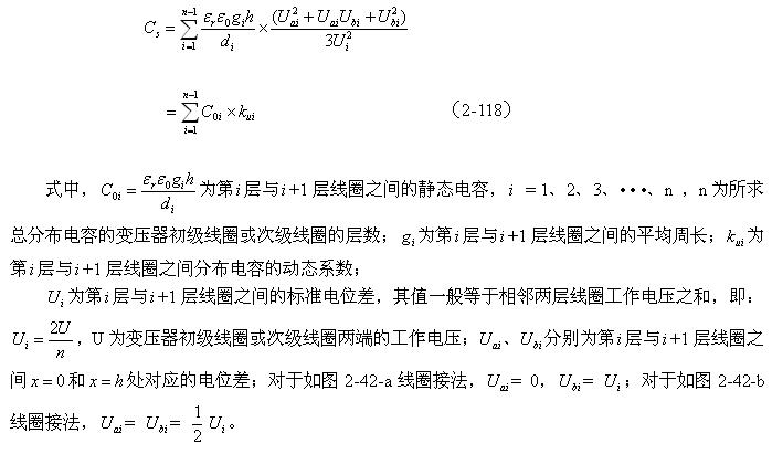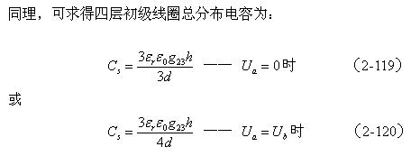 對于圖2-42-b,可求得變壓器初級或次級兩層線圈之間的分布電容為: