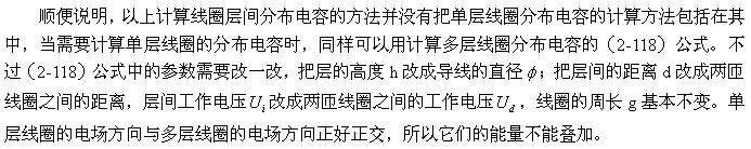 設兩個線圈相對應的兩表層間的電場近似均勻分布,即近似平板電容器的電場,那么,根據(jù)(2-112)式就可以求得該電場貯存的能量為: