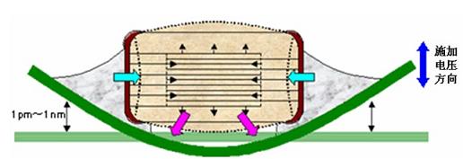 圖2:施加電壓時的壓電效應(yīng)引起電容變形
