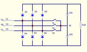 圖4三相三開關(guān)三電平APFC電路拓?fù)鋱D