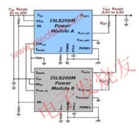 一旦在設(shè)計(jì)中采用了像ISL8200M的電源模塊,就能夠迅速并聯(lián)6個(gè)模塊,實(shí)現(xiàn)高達(dá)60A的功率,這將加速未來(lái)的設(shè)計(jì),或迅速適應(yīng)設(shè)計(jì)周期過程中設(shè)計(jì)要求的變化。