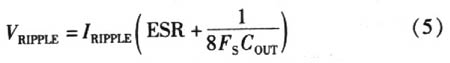 輸出電容器(CONT)的選擇受最大允許輸出電壓波紋影響。輸出電壓波紋在固定頻率脈寬調(diào)制模式下近似值為: