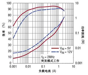 這兩款 IC 都能以可選的突發(fā)模式 (Burst Mode®) 工作,以在小負(fù)載電流時(shí)實(shí)現(xiàn)卓越的效率 (圖 4),又或者可采用強(qiáng)制連續(xù)模式,該模式舍棄輕負(fù)載效率,以換取最小輸出紋波和恒定頻率工作。即使這樣,以突發(fā)模式工作時(shí)的紋波一般也僅為 20mV。