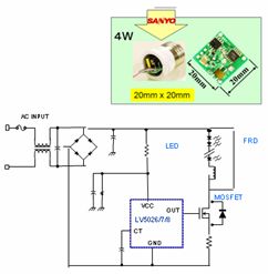 該系列是安森美半導體成員公司三洋半導體的LED控制器--LV5026M、LV5028TT和LV5027T,其中LV5026M具有TRIAC調光、PWM調光、模擬調光和功率因數(shù)校正功能;LV5028TT只有TRIAC調光和功率因數(shù)校正功能。LV5026/7/8 TRIAC調光電路如圖3所示。