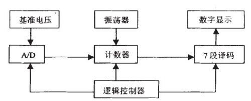 放大后的模擬電壓經(jīng)過A/D轉(zhuǎn)換器實現(xiàn)模擬量到數(shù)字量的轉(zhuǎn)換。A/D轉(zhuǎn)換結(jié)果通過計數(shù)譯碼電路變換成7段譯碼,最后驅(qū)動顯示出相應(yīng)的數(shù)值, 傳感器驅(qū)動顯示電路方框圖如圖6所示。